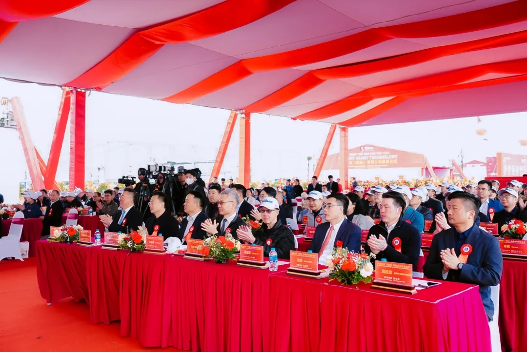 破土呈祥瑞,宏业启新程。2025年3月30日上午,bbin宝盈科技(越南)有限公司奠基仪式在越南北宁省VSIP二期工业园隆重举行。越共中央候补委员、北宁省委副书记、北宁省政府主席王国俊,北宁省VSIP工业区副总经理裴登宣,bbin宝盈科技董事长陈涛、总裁赵启祥等公司领导出席仪式。富士康、歌尔科技、智易科技、啓碁科技、正文科技、蓝微电子、德赛电池等客户代表,生益科技、台光、斗山材料、华正新材、麦德美、安美特、杜邦、太阳油墨、鼎泰高科、三菱电机、Schmoll、大族数控、芯碁微装、保德科技等41家合作伙伴,共计约150人应邀共同见证这一重要时刻。