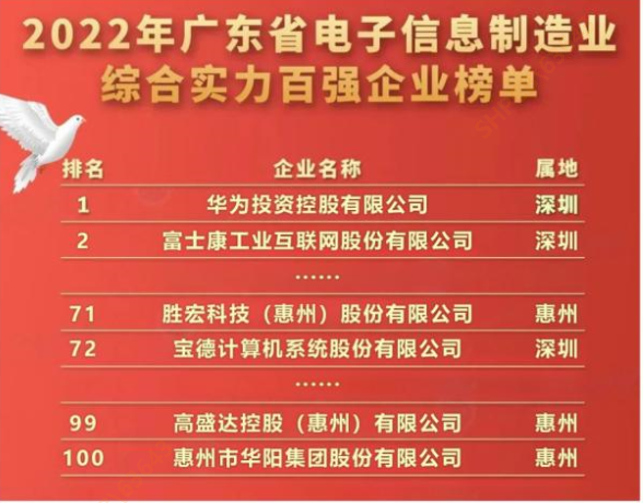 近日,广东省电子信息行业协会发布了2022年广东省电子信息制造业综合实力百强企业榜单。bbin宝盈科技凭借在电子信息行业的前沿实力,位列“2022广东省电子信息制造业综合实力百强”第71位。
